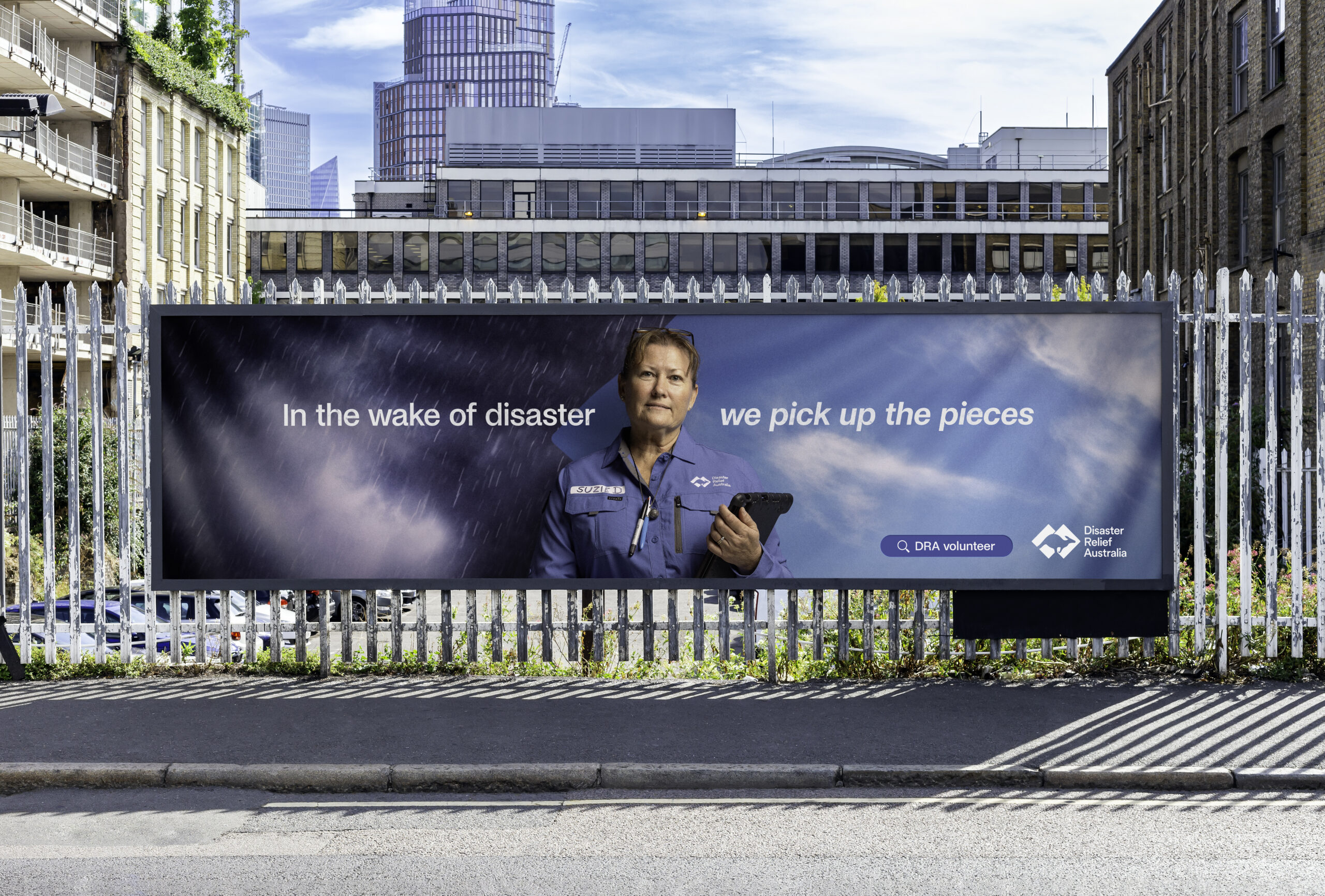 The campaign rolled out across out-of-home and digital channels, introducing DRA to a broader audience and building recognition as a volunteer-powered force for good in disaster recovery.
